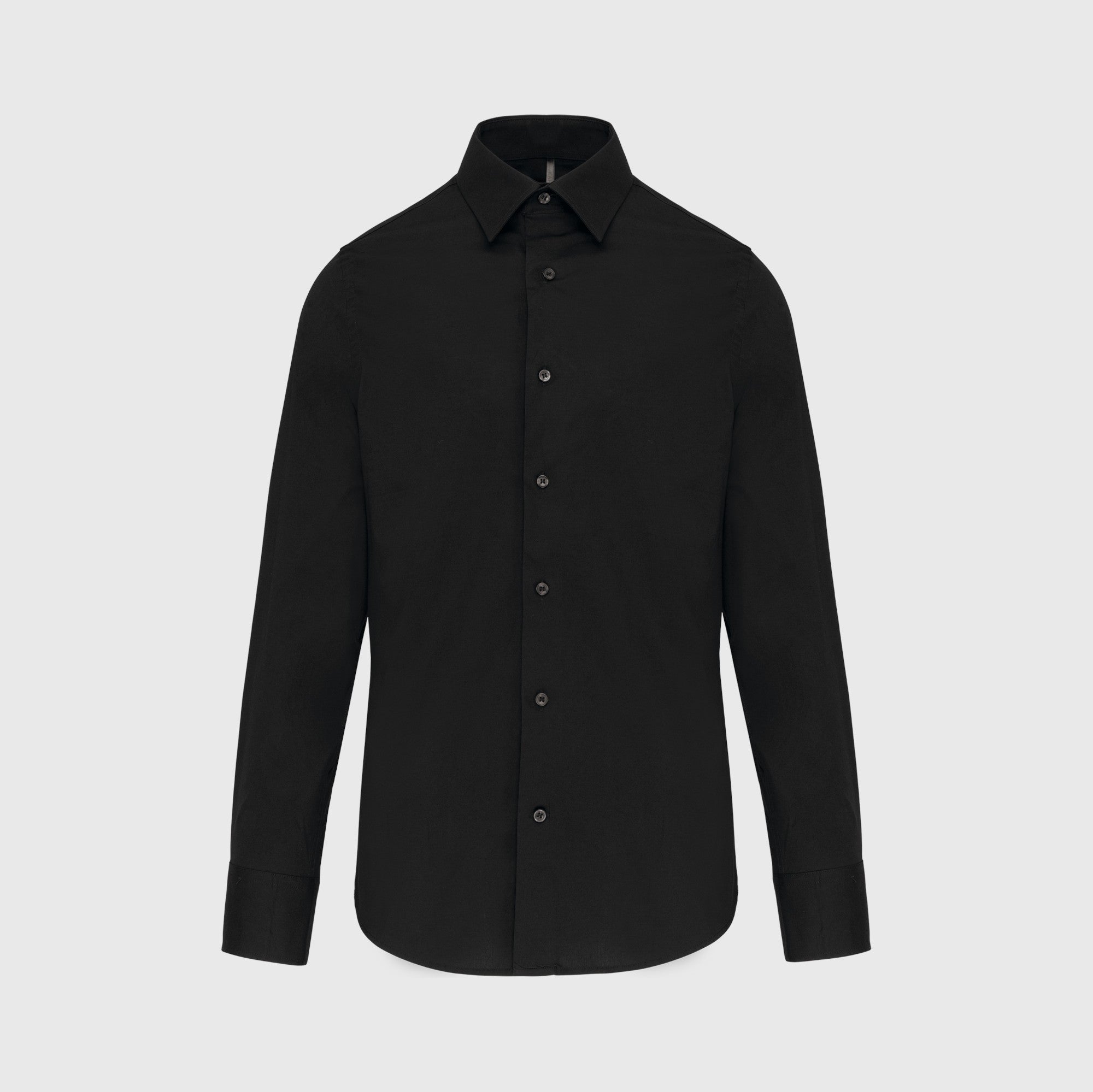 Camisa clássica homem com stretch Corte justo. Costuras duplas. Punhos ajustáveis. Bainha arredondada.